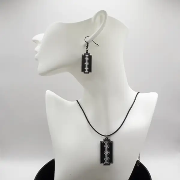 Blade Earrings and Necklace, Black Blade Earrings and Necklace - Image 2