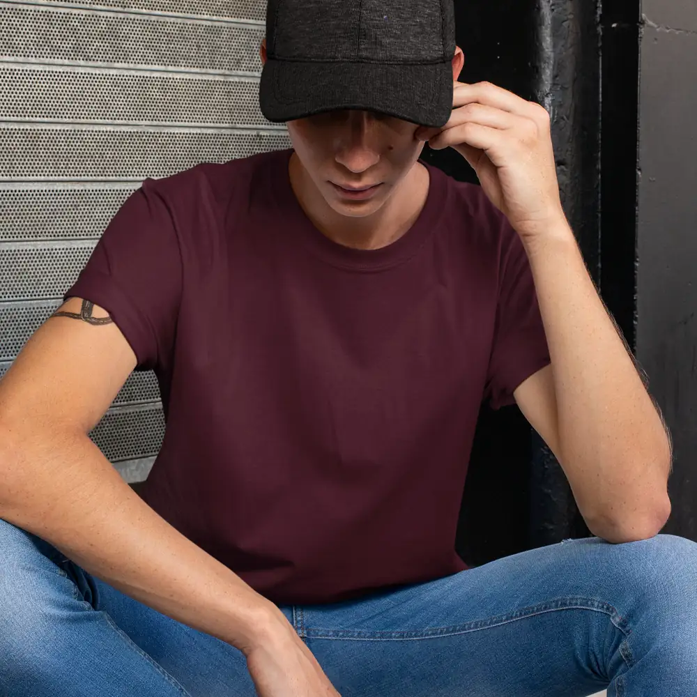 Burgundy T-Shirt, Daily Casual Mens T-Shirt