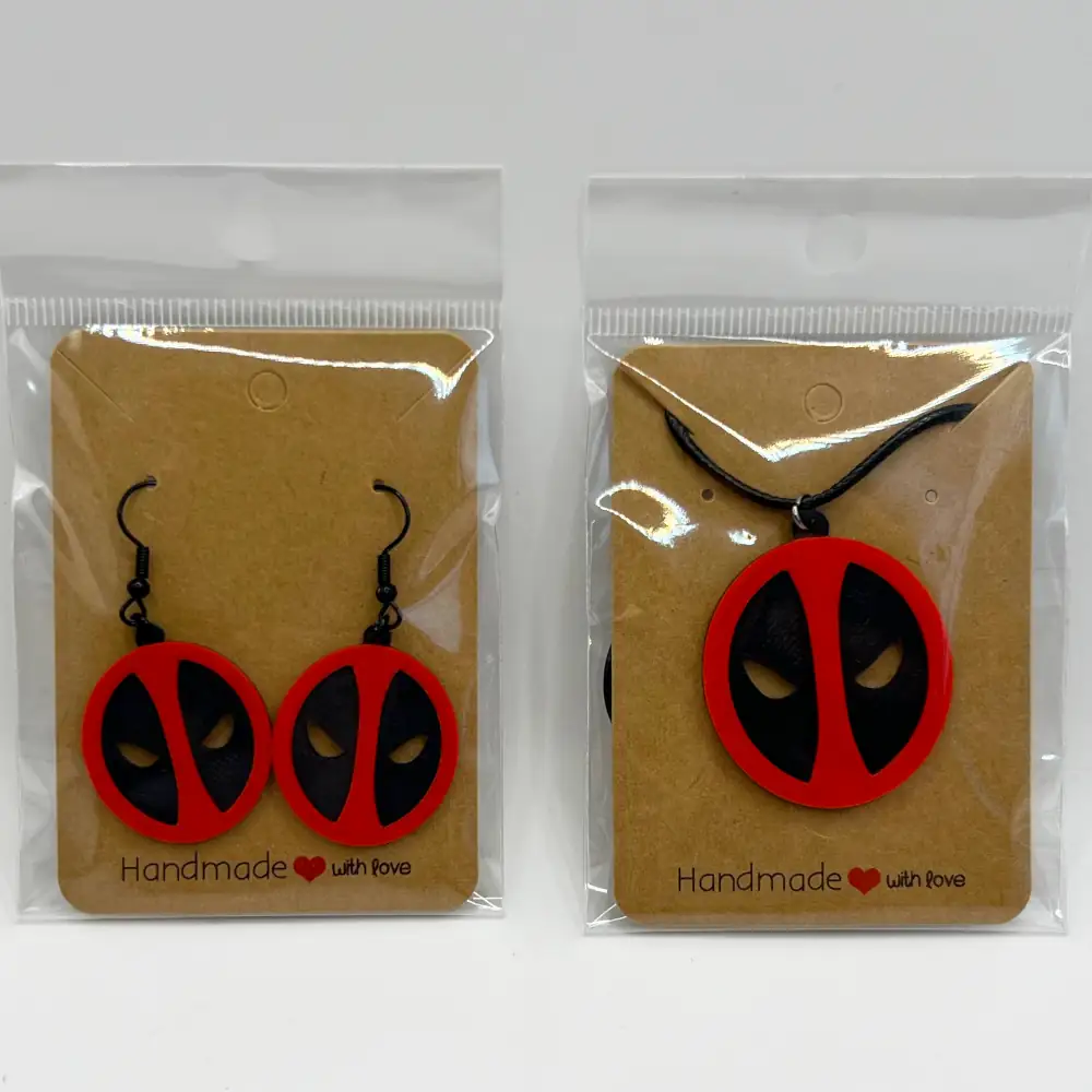 Deadpool Earrings and Necklace, Deadpool Logo Earrings and Necklace
