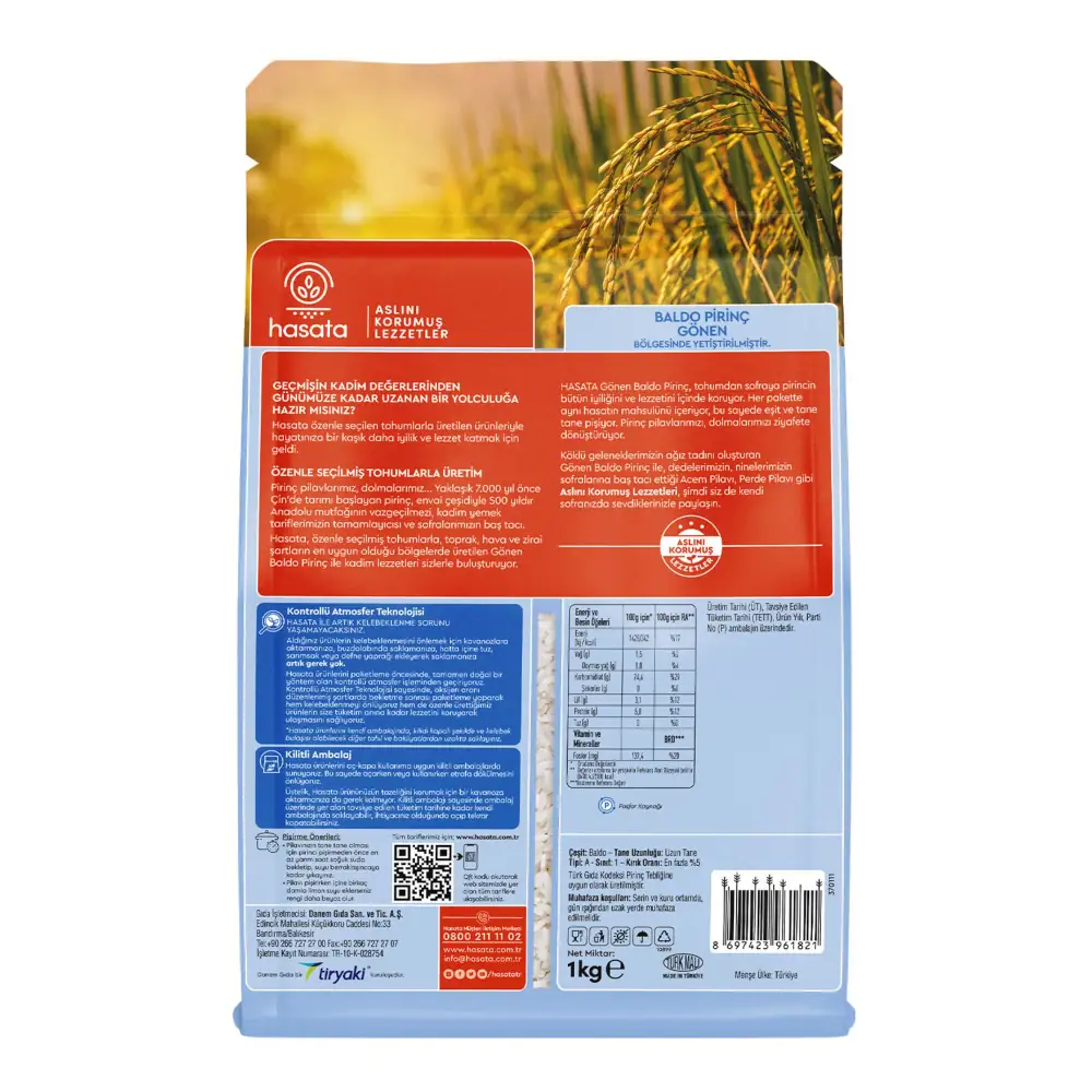 Hasata Gönen Baldo Rice preserves all the goodness and flavor of rice from seed to table and contains the product of the same harvest in each package, so it always cooks evenly and easily.