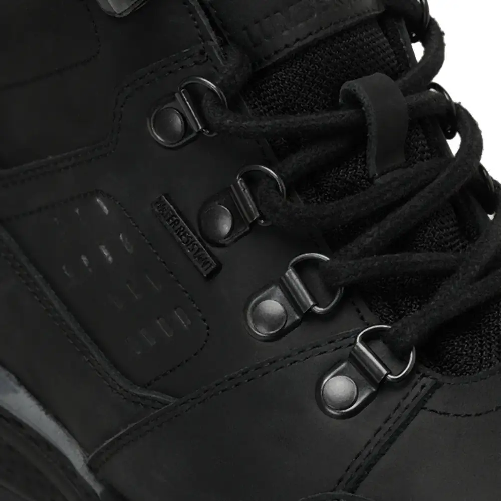 The high ankle structure, which adds a different atmosphere to the design, provides extra support and protection by covering the ankles of the boot.
