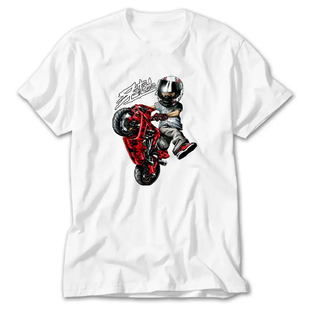 Motorcycle Cartoon White T-Shirt