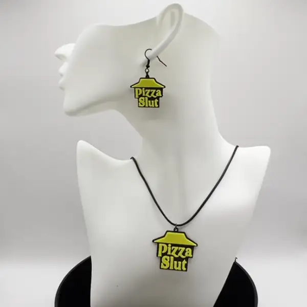 Pizza Slut Earrings and Necklace, Pizza House Earrings and Necklace